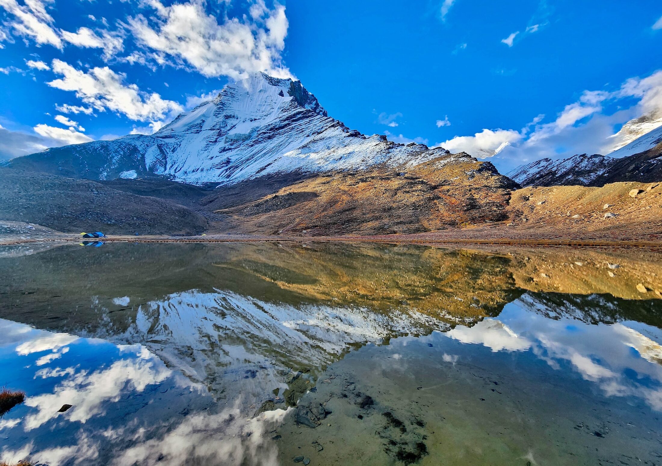 The beauty of the Kalindi Khal Trek lies in its transition from sacred rivers to a high-altitude desert of ice. The journey begins in the lush, spiritual atmosphere of Gangotri, but quickly moves into a dramatic world of granite and snow. One of the most unforgettable highlights is camping at Vasuki Tal. This high-altitude lake sits like a blue diamond at the base of towering mountains, offering a mirror-like reflection of Mount Shivling that stays with you long after the trek is over.