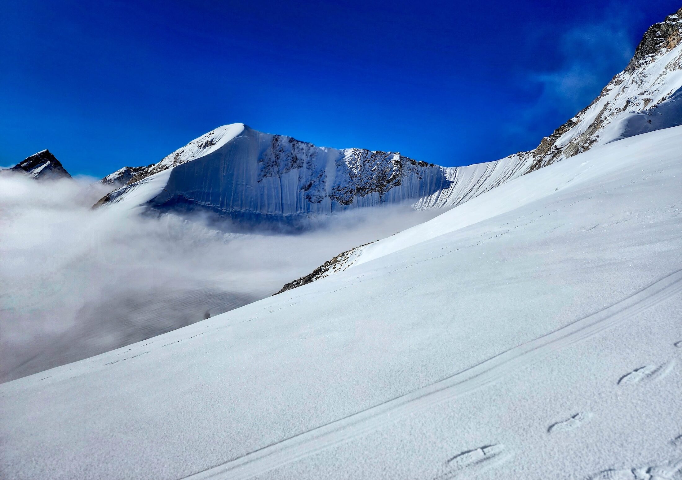 A gradual climb over ice and snow leads you to the final base camp before the big pass. From here, you can see the top of the Kalindi Khal Pass. Everyone stays tucked in their warm sleeping bags early tonight to get ready for a very early start.